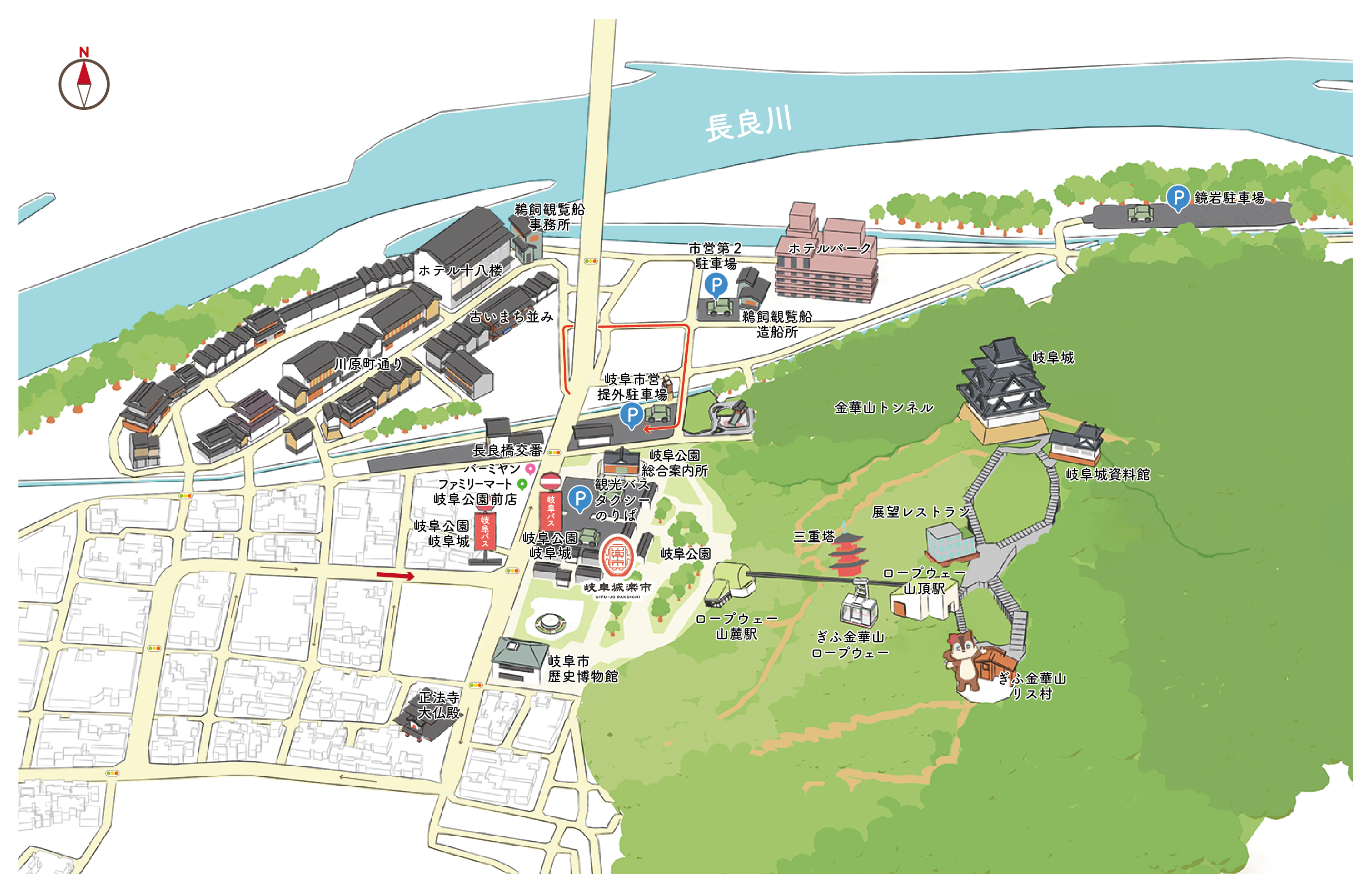 ※金華山山頂・リス村・岐阜城へ車で行くことはできません。