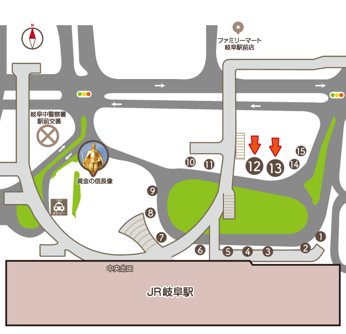 中央北口バスターミナル《12番》《13番》乗り場から乗車